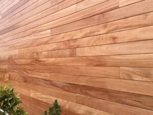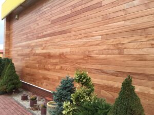Deska elewacyjna Okoume 15x145mm, zabezpieczona olejem ochronnym OSMO 420 UV