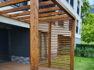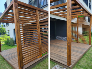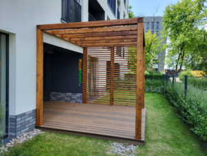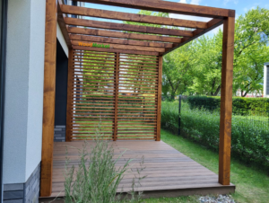 Deska kompozytowa Gardin Natur + Pergola tarasowa ze ścianką stałą