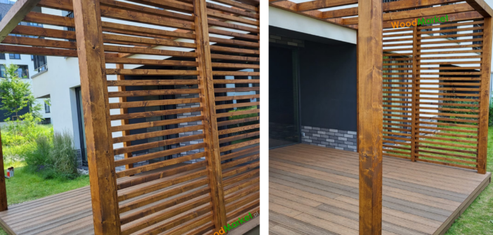 Deska kompozytowa Gardin Natur + Pergola tarasowa ze ścianką stałą