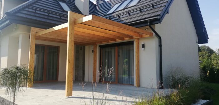 PERGOLA TARASOWA PRZYŚCIENNA TYPU STANDARD O WYMIARACH 6X3M Z MONTAŻEM