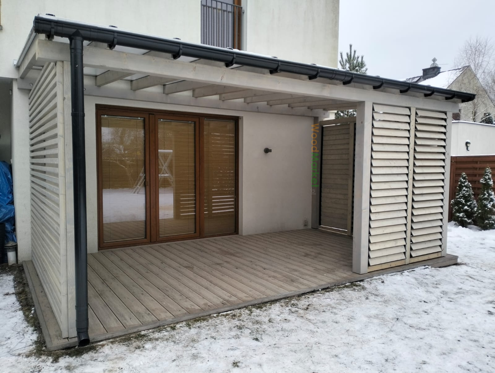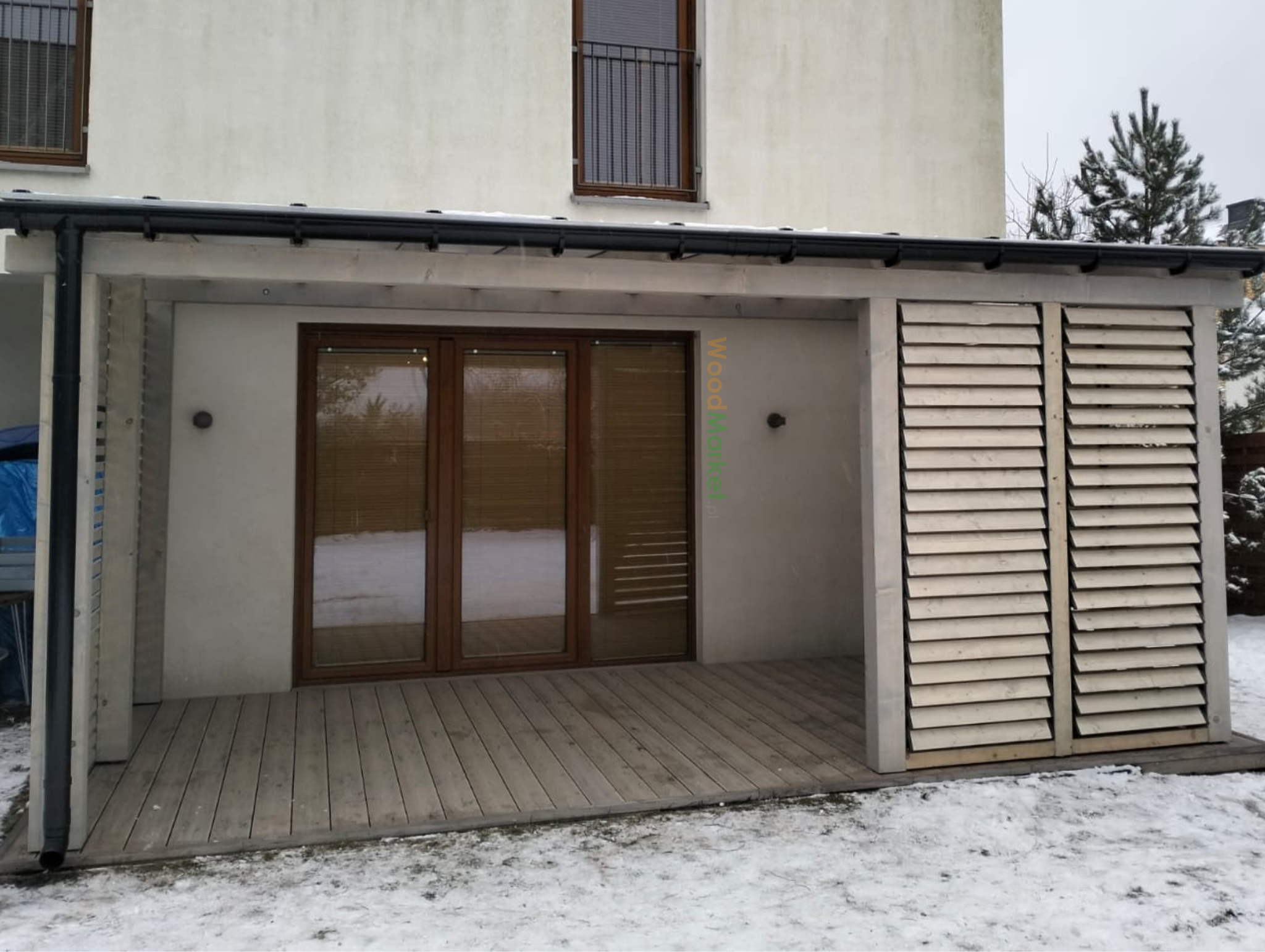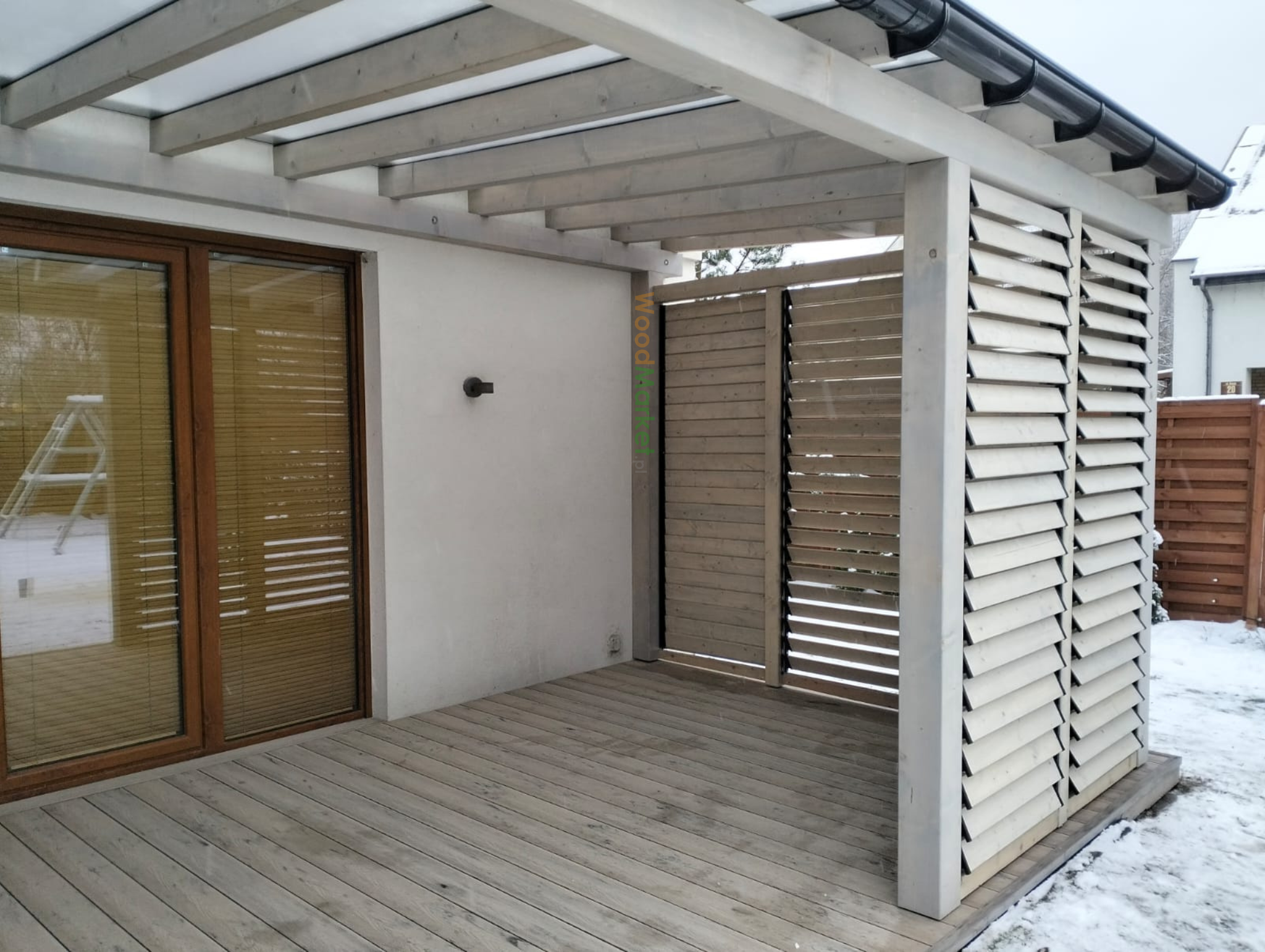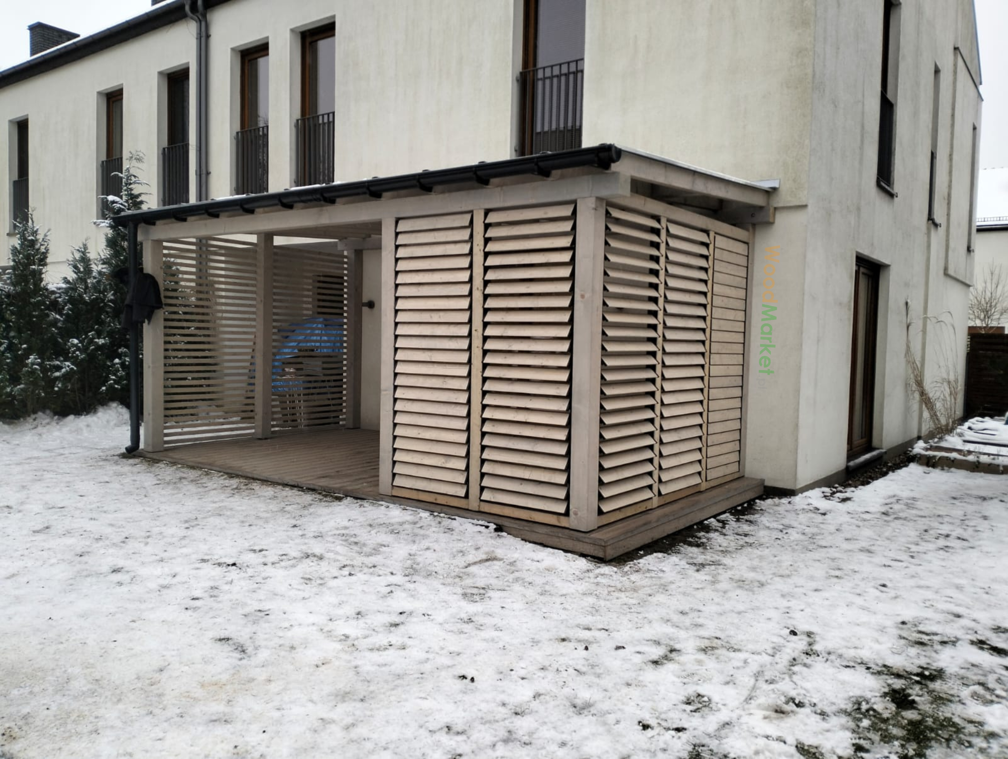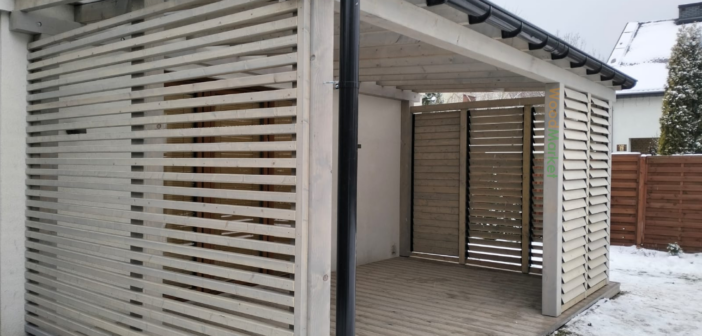 Poniżej realizacja na pergolę tarasową z drewna BSH/KVH z impregnacją w kolorze srebrno szarym oraz deska kompozytowa GARDIN NATUR Srebrna Jodła – wyszło super ( choć zdjęcia prosto z dnia roboczego)