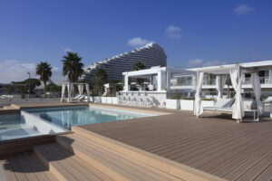 „W przypadku desek kompozytowych WPC absolutnym liderem jest francuski Silvadec. Elegance to pełne deski kompozytowe o wyjątkowo dobrych walorach antypoślizgowych. Oferują antypoślizgowość w klasie R11-R12 wzdłużnie oraz R12-R13 poprzecznie. To deska lita, więc nie ma obaw o wodę zalegającą w komorach. Duża zawartość mączki drzewnej, która jest izolatorem termicznym sprawia, że nie oparzymy się wychodząc na brzeg. Zresztą sam producent rekomenduje je na użytek przy basenie. Deski zostały przebadane w tym celu pod względem wpływu wody basenowej z chlorem. Z kompozytami Silvadec nie martwimy się drzazgami oraz zadrami. Produkty te mają higieniczny atest bezpieczeństwa. Są przyjazne dla człowieka i w 100% ekologiczne.” — podpowiada Piotr Lisowski z JAF Polska