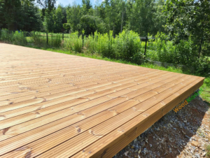 Termo Sosna Skandynawska to drewno o miodowo–brązowej barwie. Deski tarasowe z niej wykonane posiadają 2 klasę odporności na biodegradację. Oznacza to nawet 25 lat bezproblemowego korzystania z tarasu. Sosna skandynawska rośnie w surowym klimacie, w wyniku czego ma małe przyrosty roczne. Dzięki tej właściwości jest o wiele bardziej trwała i wytrzymała od naszej rodzimie występującej sosny. Modyfikacja termiczna dodatkowo zwiększa trwałość i stabilność materiału, a poza tym pozbawia go żywicy.